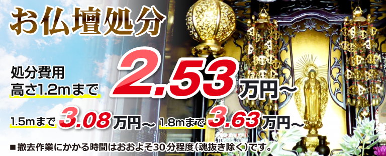 お仏壇の処分費弊社の仏壇お引取りは撤去・処分となります。各自治体による処分費用も含まれています。 |